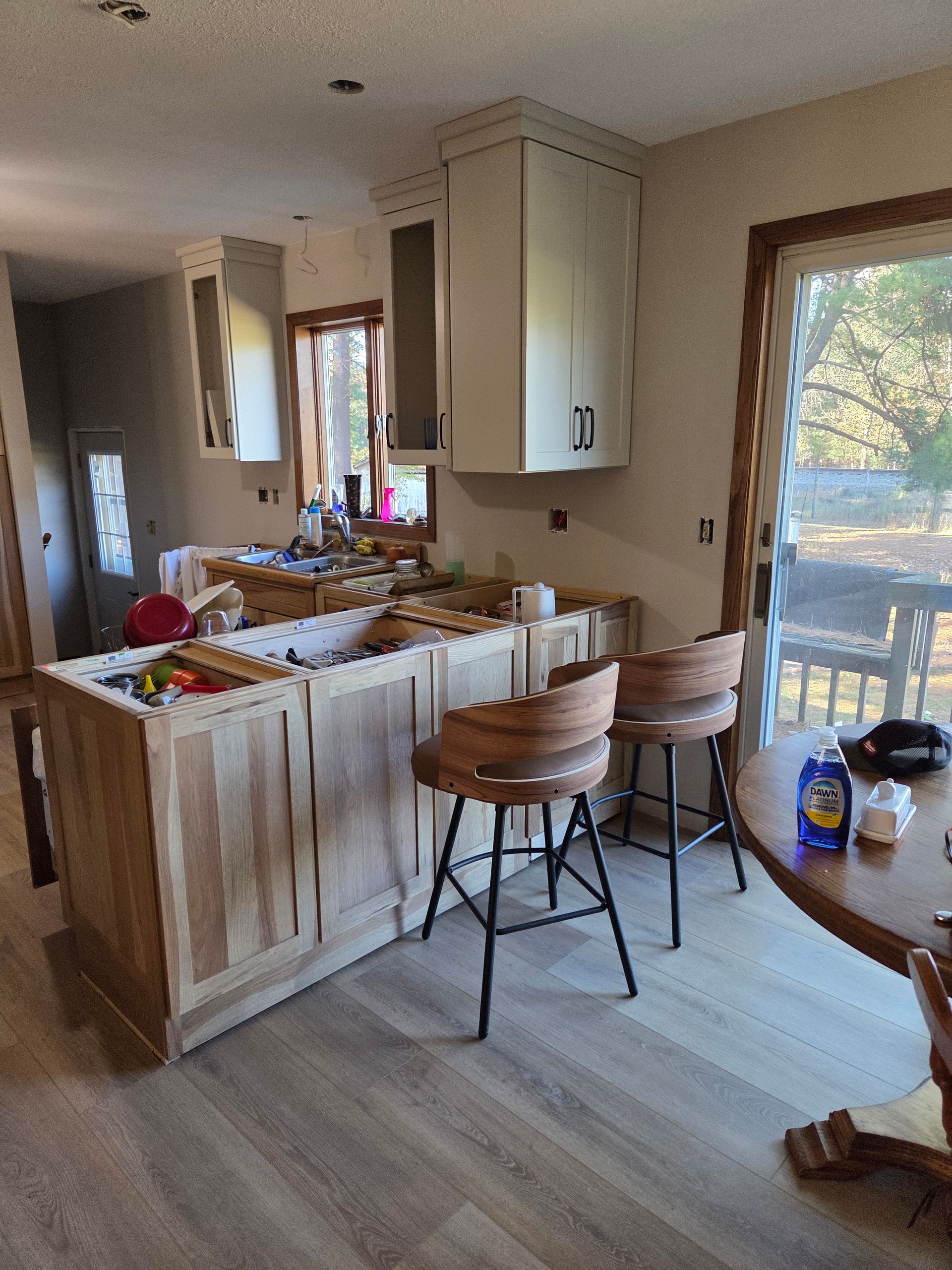You will see crews remove old cabinets, countertops, and appliances, then open walls if plumbing or electrical needs to be rerouted. New wiring goes in for under-cabinet lighting, outlets are added to meet current code, and plumbing is relocated if the sink or dishwasher is moving. Once rough-ins are inspected and approved, drywall is patched or replaced, and cabinet installation begins with uppers going in first to avoid damaging base units during the process. Countertops are measured after cabinets are set, and appliances are installed after flooring is complete.